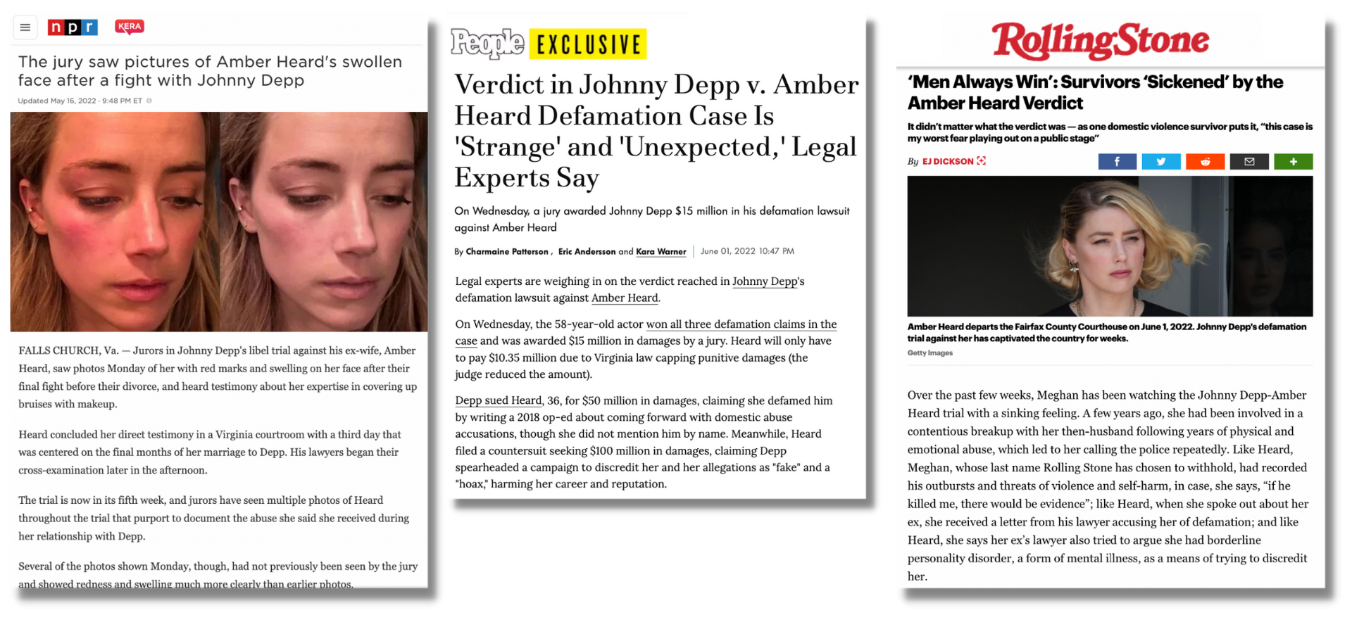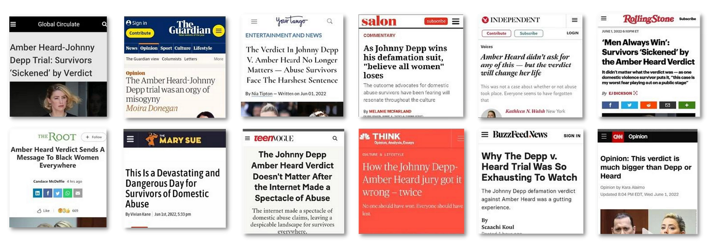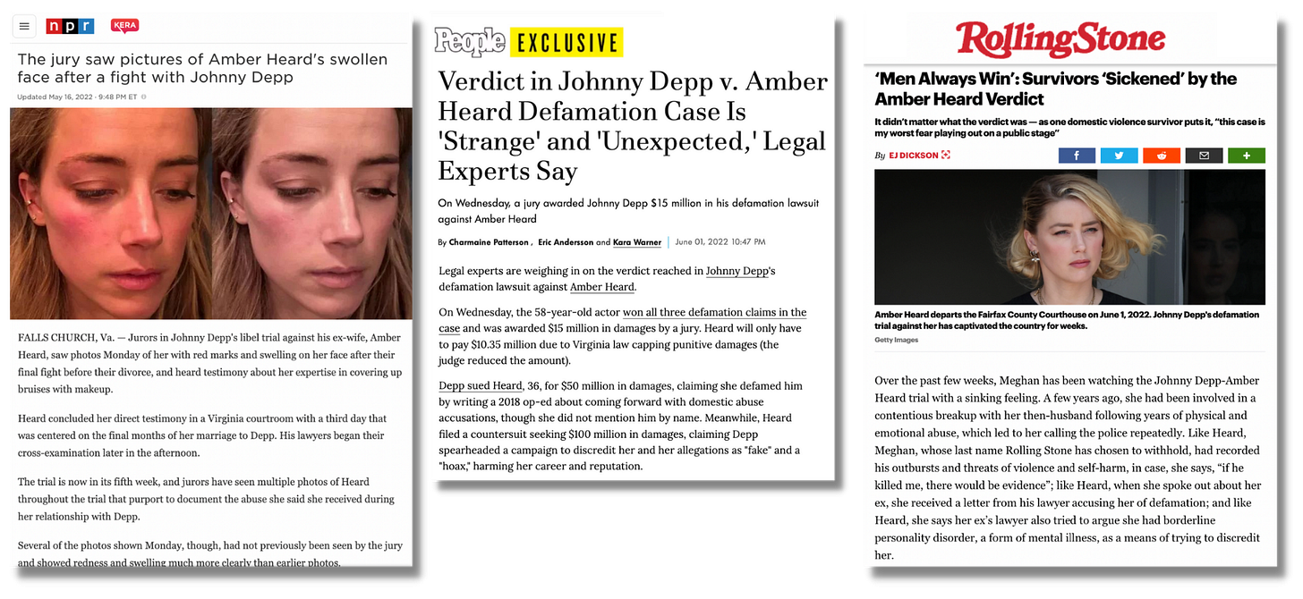 At the end of the day, the biggest impact of this defamation trial was to force every American to question the honesty of the mainstream media. Everyone who watched the trial while following the mainstream media’s coverage realizes that the press wasn’t ‘reporting’ but instead ‘narrating’. In the political realm, most of us are all too comfortable accepting ‘spin’ if it supports our party - in this case, both parties were predisposed to hate Johnny Depp and yet the evidence was clear and convincing that he was Amber Heard’s victim. The Depp vs. Heard trial was perhaps the first time in history that Americans were able to consume the facts at the same time as the media allowing them to realize just how unreliable and untrustworthy the press can be. Here are just a few of the media’s attempts to continue to gaslight their readers: