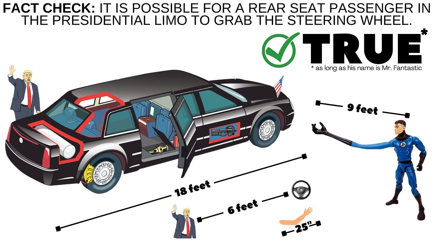 Finally, what if Ms. Hutchinson’s claims are true? The sitting president of the United States, realizing that his supporters were rioting, gave a lawful order to his security detail to take him to the Capitol. Realizing that his supporters thought they were helping him he knew that ONLY he could calm them down and avoid further violence. When the Secret Service Agent told the president that the protesters ‘might’ be armed he responded that he was willing to take the risk to protect the republic and his reputation. When the agents REFUSED his lawful order he attempted to drive himself to the Capitol but the agents held the president against his will transporting him to the White House where he could more easily be controlled. If Ms. Hutchinson’s debunked story is true had the Secret Service not illegally intervened, the president would have been the nation’s hero on January 6th…