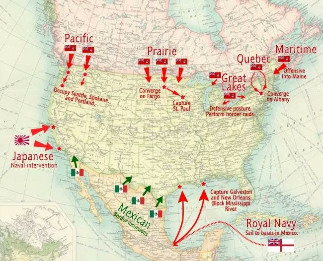 It is also worth noting that while Canada eventually abandoned Defence Scheme No. 1, the United States developed its own war plan—War Plan Red—which envisioned a swift invasion of Canada in the event of a war with the British Empire. This mirrored the Canadian approach, with U.S. forces aiming to seize key Canadian ports, railways, and industrial centers to prevent a prolonged conflict. These plans, though never acted upon, highlight the mutual suspicion that once defined North American military strategy—a suspicion that Canadians today are quick to attribute solely to the United States, despite their own history of military contingency planning.