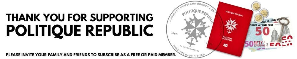 Please accept this note of gratitude for joining the Republic. Hopefully, you’re enjoying your passport to the Politique Republic as much as we’ve enjoyed sharing our thoughts on politics, law, technology, and business. Having you as a citizen of this experiment means a great deal to me. Thank you.