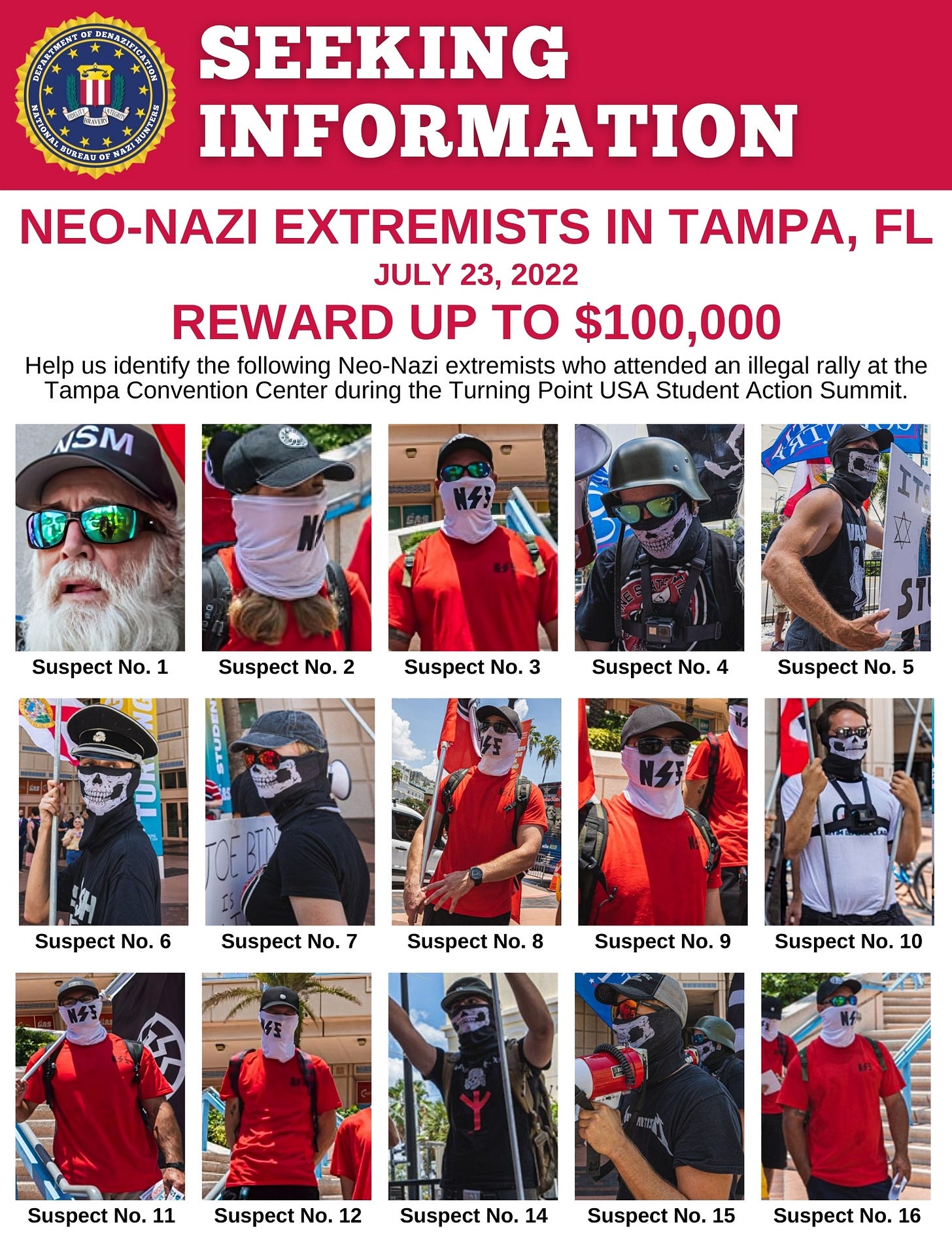 In an effort to see if I could uncover the identities of the Neo-Nazis who were present at the Tampa Convention Center on July 23rd I distributed a ‘Seeking Information’ poster from the newly created “Department of Denazification” on various ANTIFA and Anti-Nazi Subreddits.