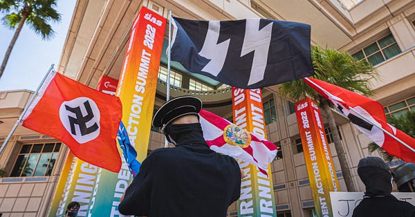 Who are the Neo-Nazis that appear at every conservative event in Florida? Are they real Neo-Nazis or imposters? Does it even matter as they're still spreading hate?