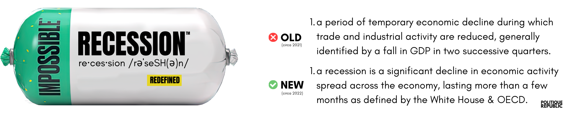 For the first time in American history, with just three months left until the midterm election, the White House announced that the definition of recession used by virtually every developed nation was never actually the definition of recession.2 Instead the White House explained that until a private corporation called the National Bureau of Economic Research (NBER) announces the country is in recession - it is not in recession. In fact, it turns out that just eight economists who serve on the Business Cycle Dating Committee (BCDC) are tasked with declaring the start and end date of recessions.