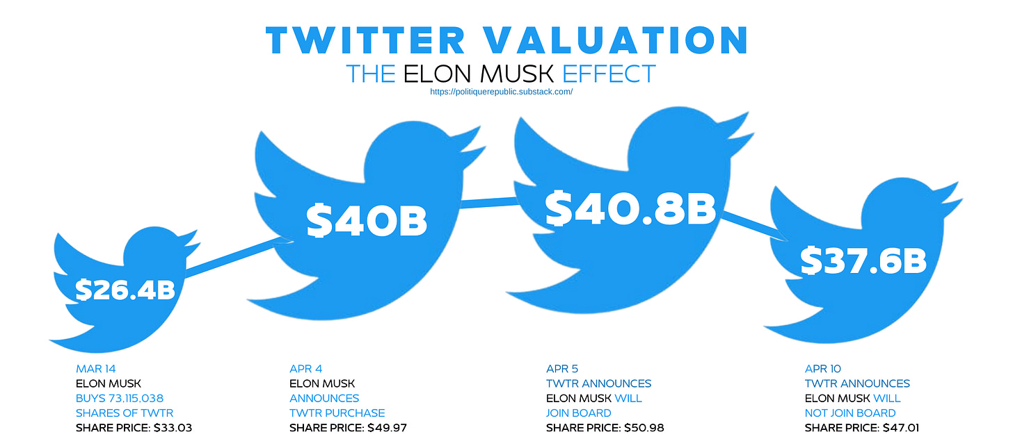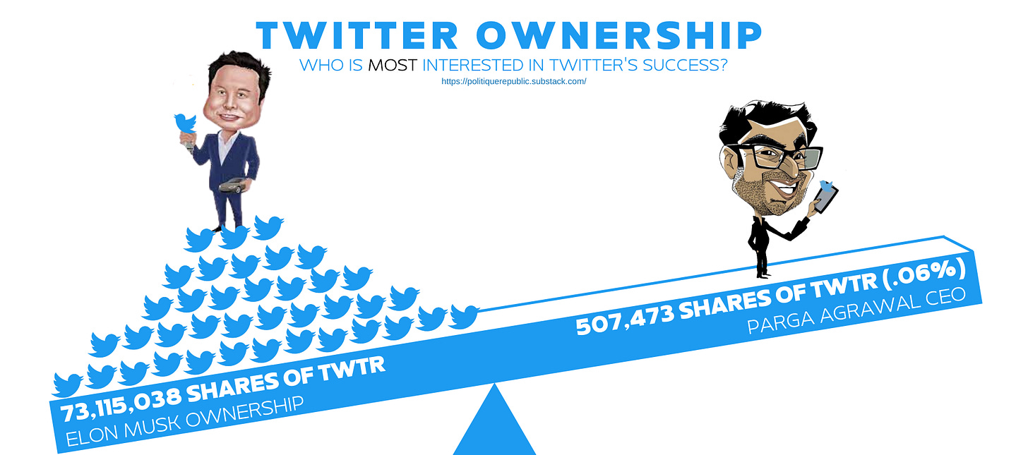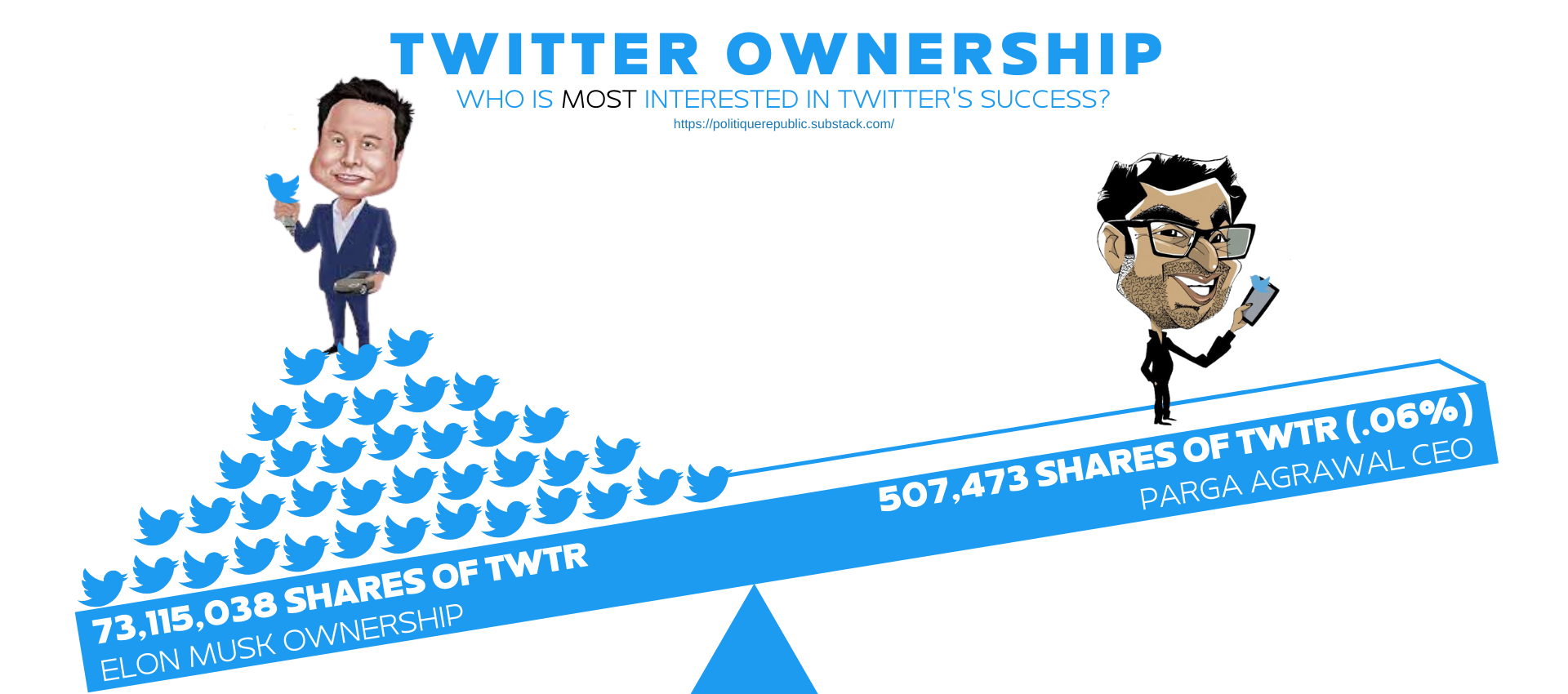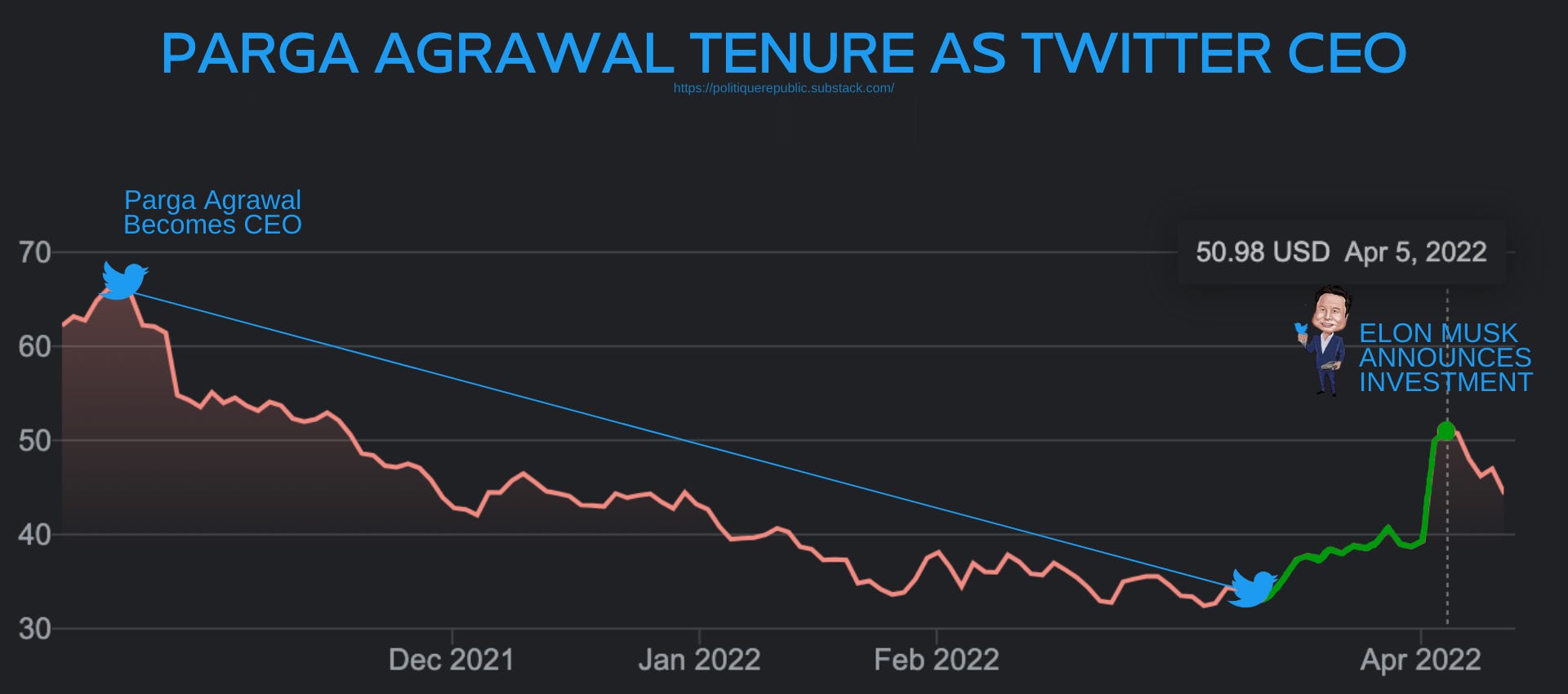 Surprisingly Elon Musk took Agrawal up on his invitation to join the board along with restrictions against buying more shares and speaking publicly about the company. Afterward, Agrawal (foolishly) pressed his hand publicly stating, “having Elon as a fiduciary of the company, where he, like all board members, has to act in the best interests of the company and all our shareholders, was the best path forward…” The truth was that having Elon handcuffed would only help Agrawal - certainly not the company - Musk is the best thing to happen to the company in years. As a result, Musk informed the Agrawal that he was unwilling to agree to stop buying shares in the company or stop publicly sharing his opinions about the performance of management and would not be joining the board.