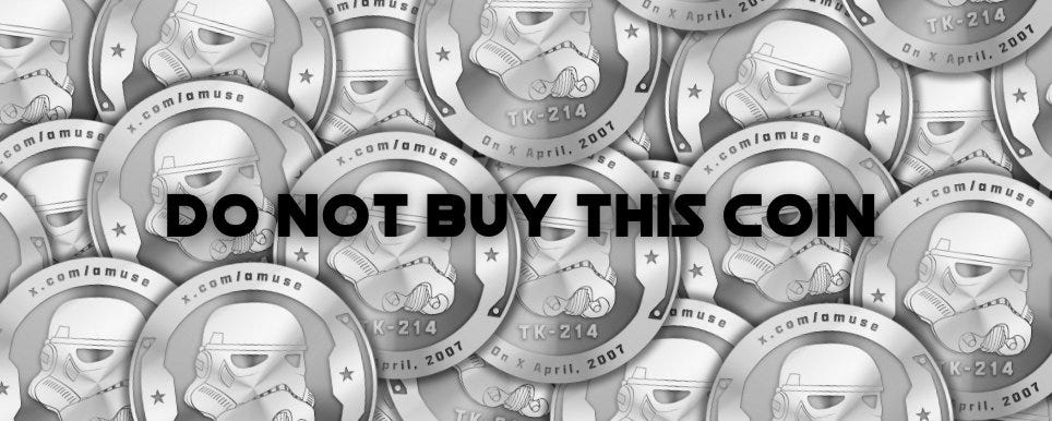 I never planned to be a memecoin founder. I remain, at best, a bemused observer. But for a brief moment, my stormtrooper coin stormed the digital markets. It did so not in spite of my warning, but perhaps because of it.
