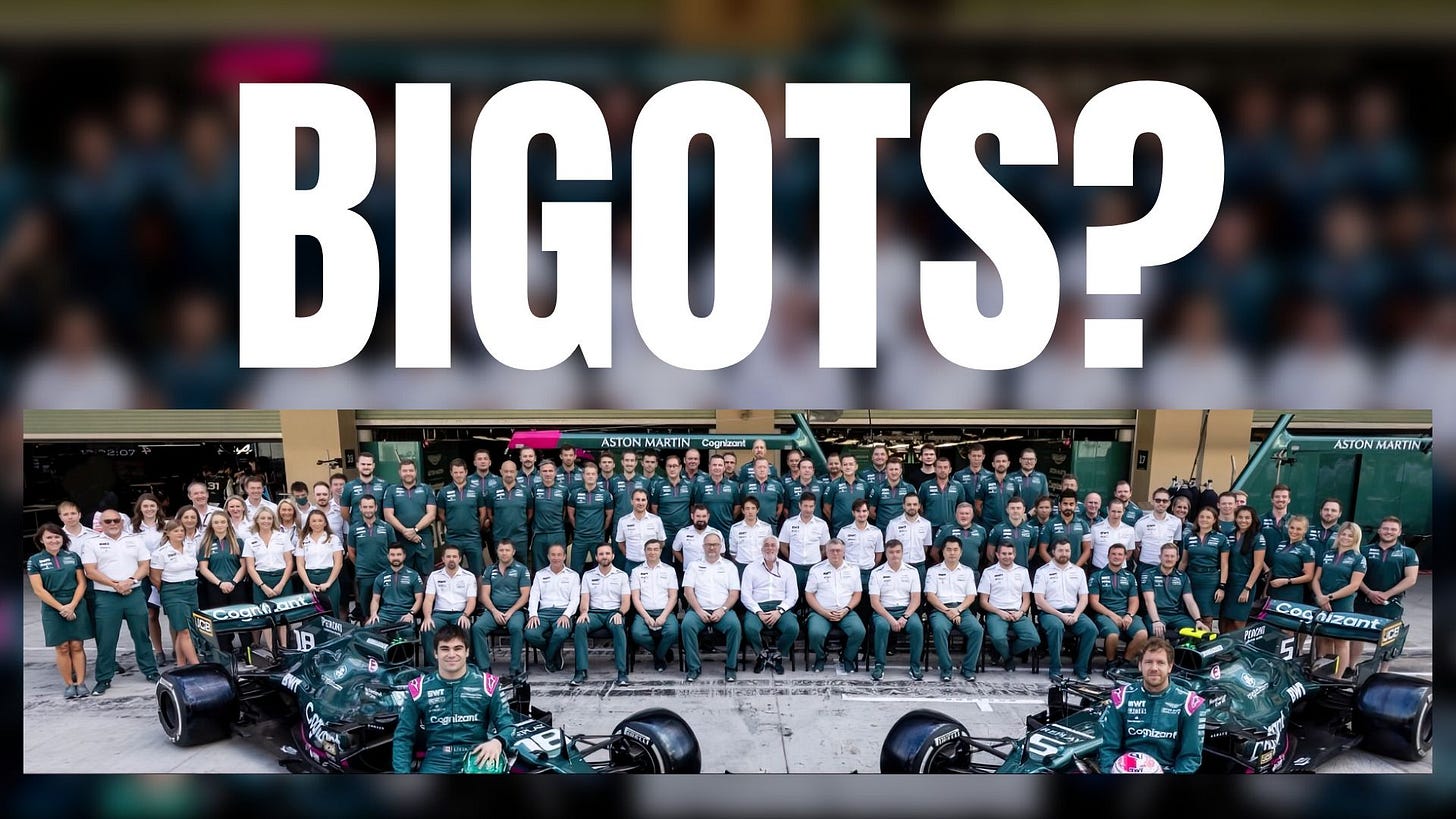 On Friday the mainstream media began running headlines like “Former Aston Martin F1 Employee Reveals Racist, Homophobic Abuse That Drove Him Out of the Sport”1 and “'They didn't call me by name, it was brownie or n*****' - Formula 1 worker reveals racist abuse.”2 The only problem with the stories were that they were filled with half-truths and gave reader…