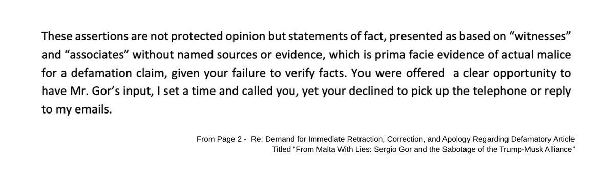 Sergio Gor's lawyer, Robert Garson, is demanding that I remove the op-ed from 𝕏, issue a full retraction falsely claiming the article contained false statements about Gor, and issue a prominent apology on 𝕏 and in a local newspaper expressing regret for the harm I caused Gor, including emotional distress.
