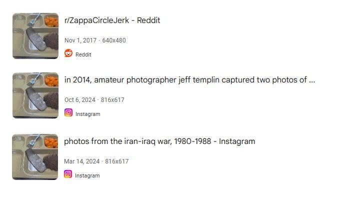 Consider the photographs first. The primary image circulating on ๐ and amplified by accounts like @sentdefender, which describes itself as an open-source intelligence monitor focused on Europe and global conflicts, purports to show food served to American sailors during the operation. A basic reverse image search on Google reveals that at least one of the photographs had been circulating online since at least 2017, and the imagery appears to trace back to the Iran-Iraq war of the 1980s. This is not a subtle error. It is not a case of mislabeled metadata or an honest mistake about which ship generated the photograph. It is a decades-old image of food from a foreign conflict being presented, without any apparent verification effort, as contemporary evidence of US Navy conditions. Any first-year journalism student knows that reverse image search is a baseline verification step, one that takes roughly 30 seconds and requires no specialized training. The drive-by media outlets that published these images either skipped that step deliberately or could not be bothered to perform it. Neither explanation is flattering, and one of them is far more sinister.