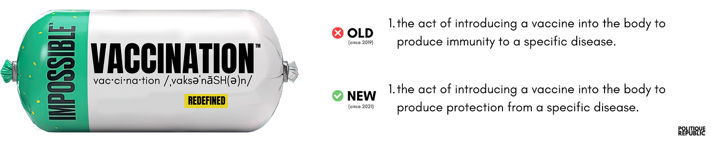 The definitions promoted by the CDC when Biden was making false claims about the vaccines were interpreted by most people that the vaccines were 100% effective - matching Dr. Fauci’s mantra that the vaccines were both “safe and effective”. The fact of the matter is that the so-called vaccines should be called ‘therapeutics’ as they seem to reduce the spread and the seriousness of Covid-19 infections - they do not seem to offer any sort of immunity as a traditional vaccine would provide. Yet another word made meaningless for political purposes.