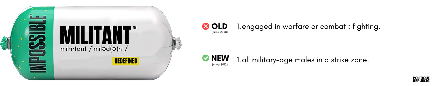 When it became clear that President Obama’s drone war against al Qaeda was resulting in an unprecedented number of civilian deaths the decision was made to change the definition of militant. Prior to 2012 to be considered a militant one had to be engaged in warfare or combat but by 2012 every military-age male in a strike zone was declared to be a militant. As a result, in Yemen, the civilian drone casualty rate fell from 71% in 2010 to 1% in 2012. In Pakistan, the civilian drone casualty rate fell from 11% in 2011 to 2% in 2012.14