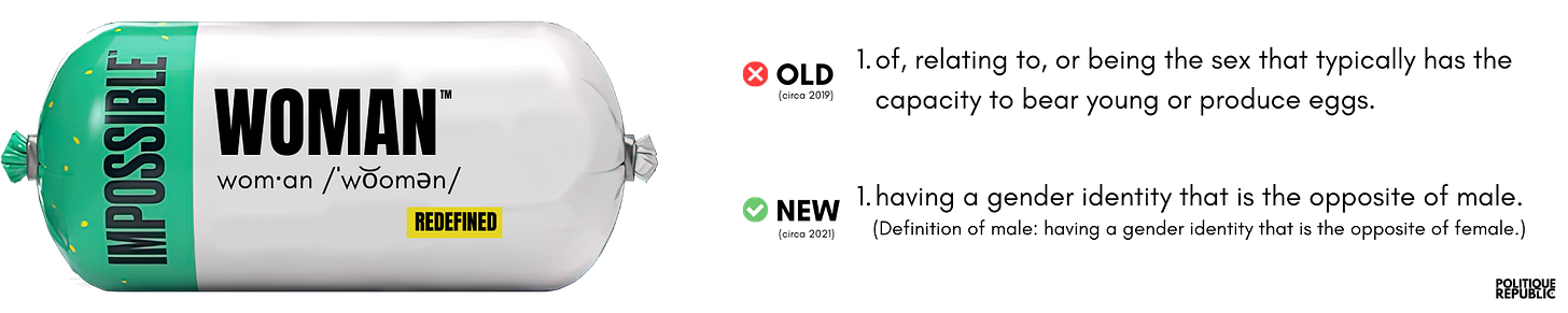 The efforts to redefine the term woman are perhaps the most controversial. No one has covered the effort more extensively than Matt Walsh so I’ll let him explain the issue: